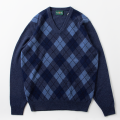 トラディショナルなアーガイルのVネックセーター。