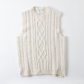 クラシックなケーブルニットデザインと様々なステッチ技法を融合させた、メリノウールのセーターベスト。